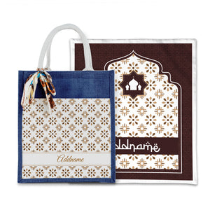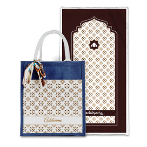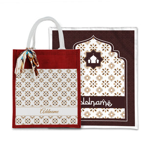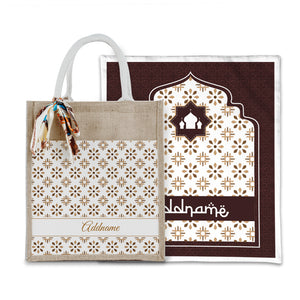 Arabesque Tawny Brown Sejadah with Matching Colourful Jute Bag