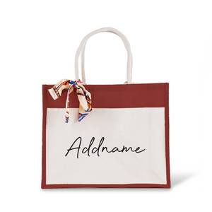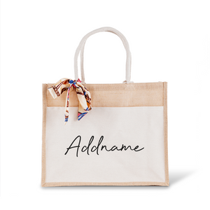 Our Jute bags are made from a recycled material that is both eco-friendly and is heat resistant. This tote bag is perfect for carrying around groceries, personal items, food and many more. Personalize it to your liking, and even more we provide free twilly on every purchase!