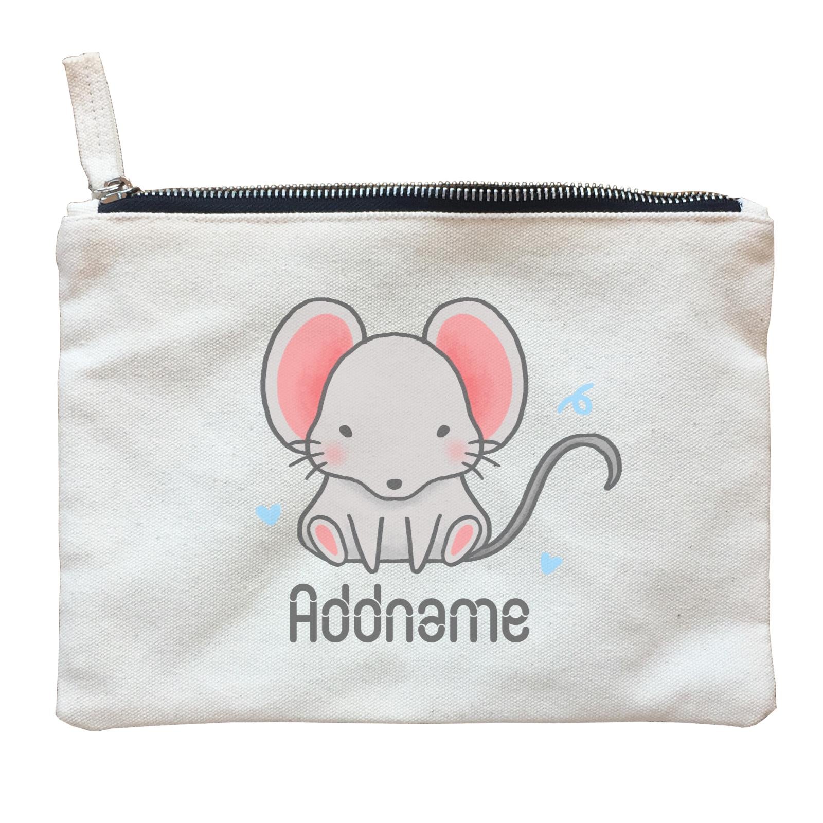 Cute Hand Drawn Style Mouse Addname Zipper Pouch