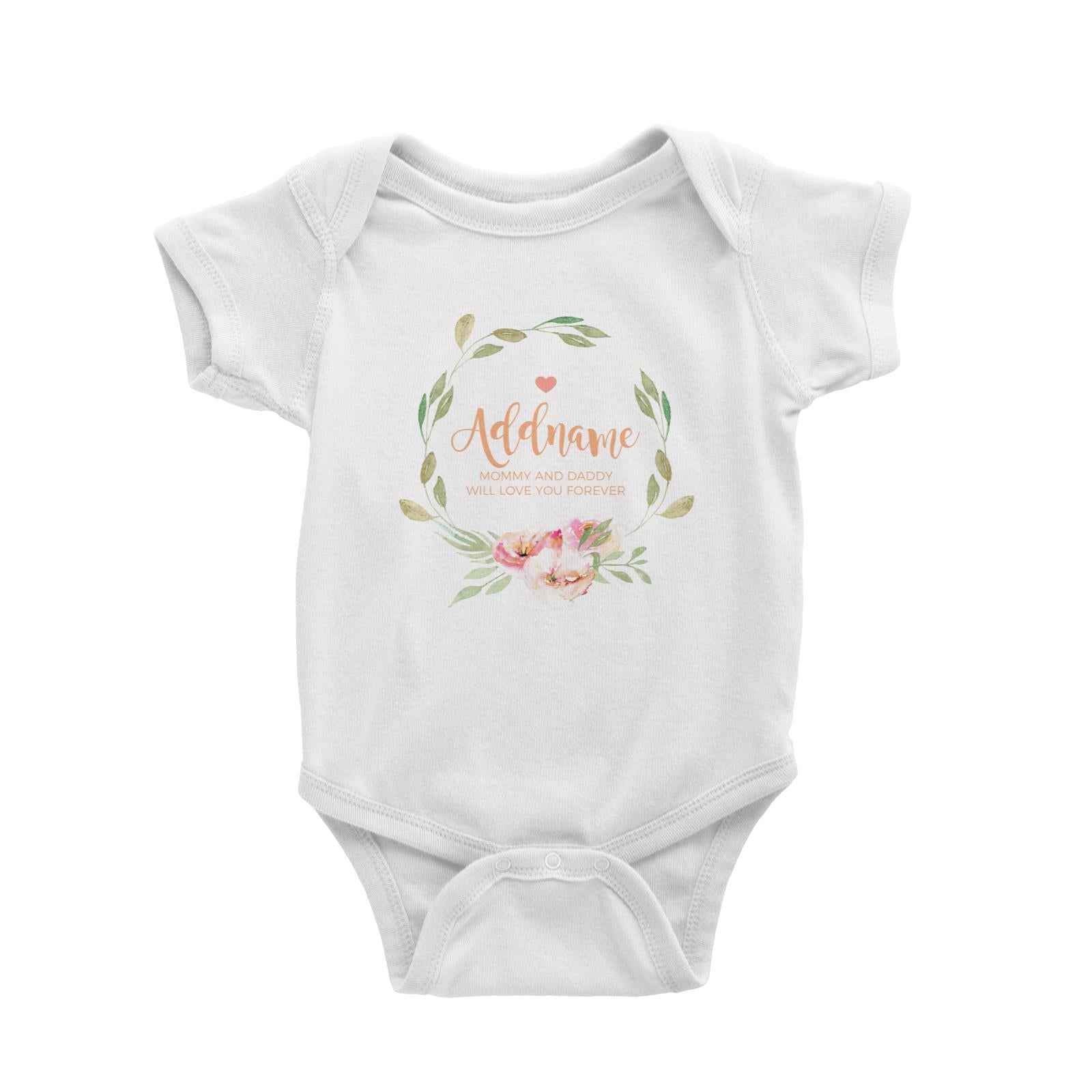 Watercolour Sweet Pink Flowers Wreath Personalizable with Name and Text Design is part of our basic newborn range, great way of making a statement! Made with 100% cotton, High Quality and Comfortable to wear. Perfect as gifts for new babies, as an announcement piece or just because!