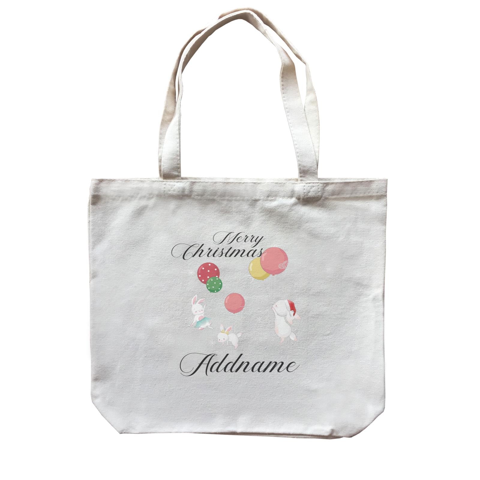 Christmas Cute Rabbits With Balloons Merry Christmas Addname Canvas Bag