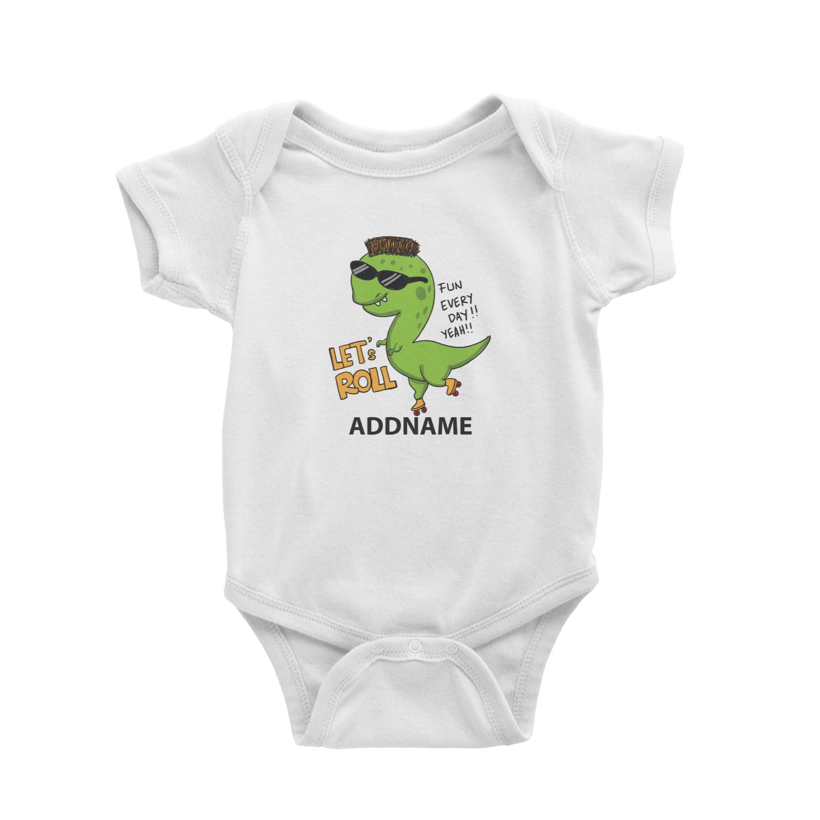 Cool Cute Dinosaur Let's Roll Fun Everyday Addname Baby Romper