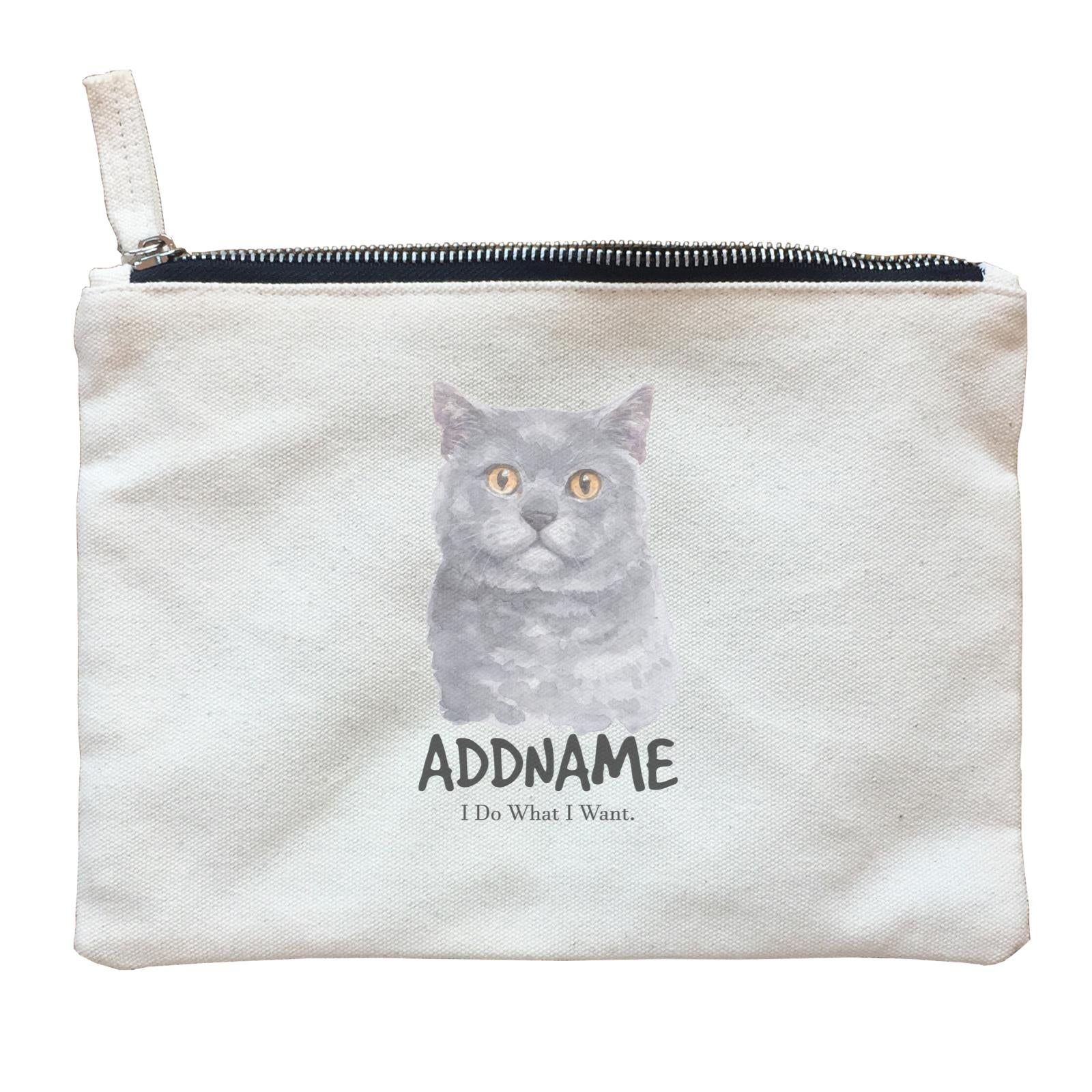Watercolor Cat British Shorthair I Do What I Want Addname Zipper Pouch