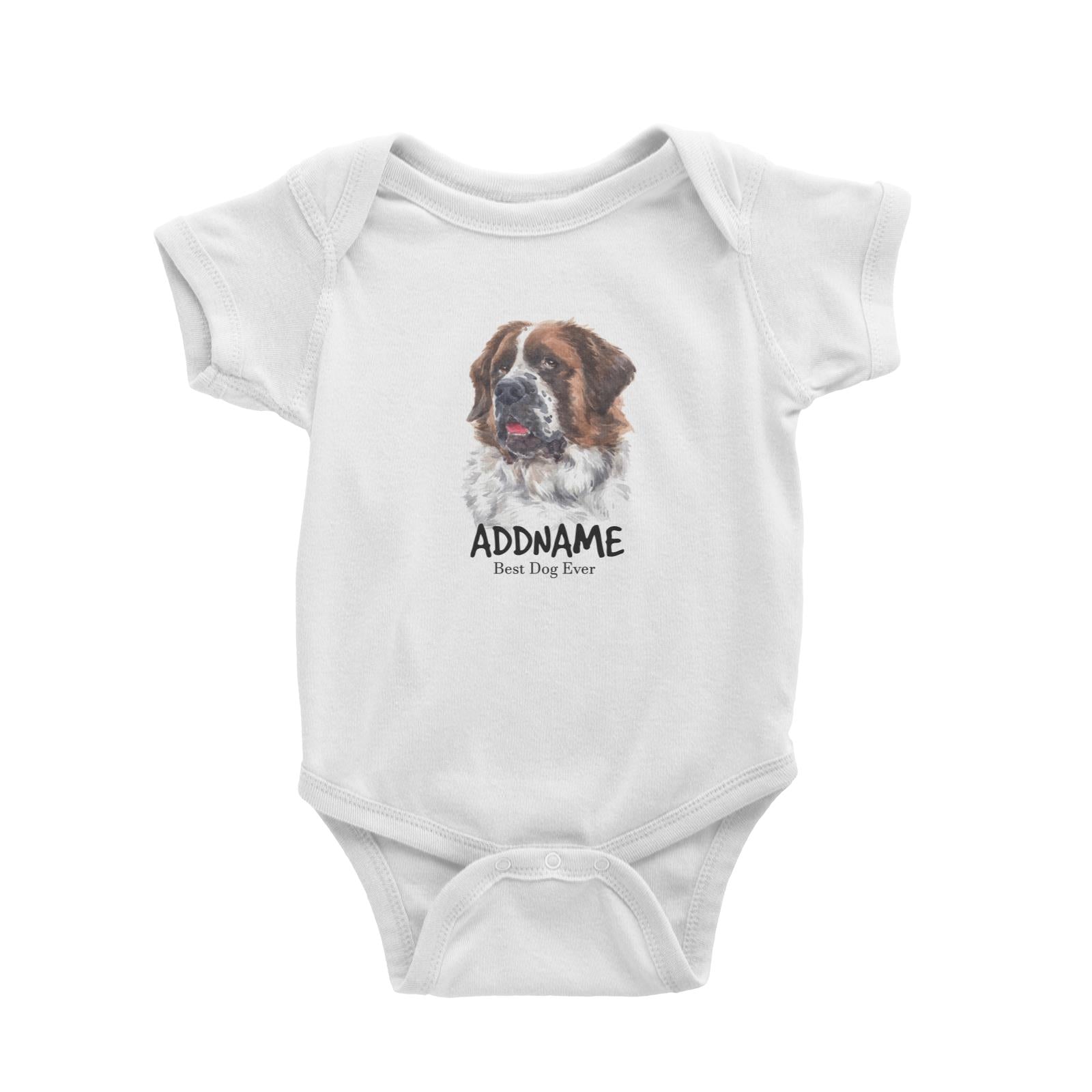 Watercolor Dog Saint Bernard Best Dog Ever Addname Baby Romper