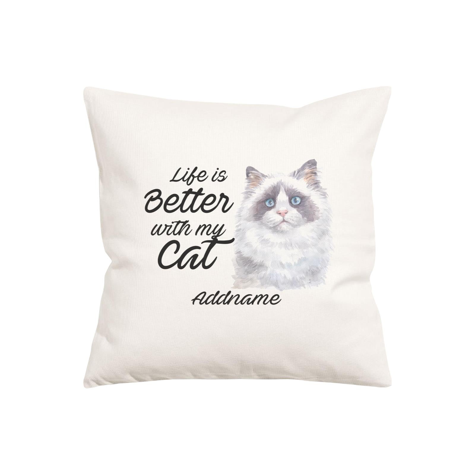 Watercolor Life is Better With My Cat Ragdoll Cat Addname Pillow Cushion