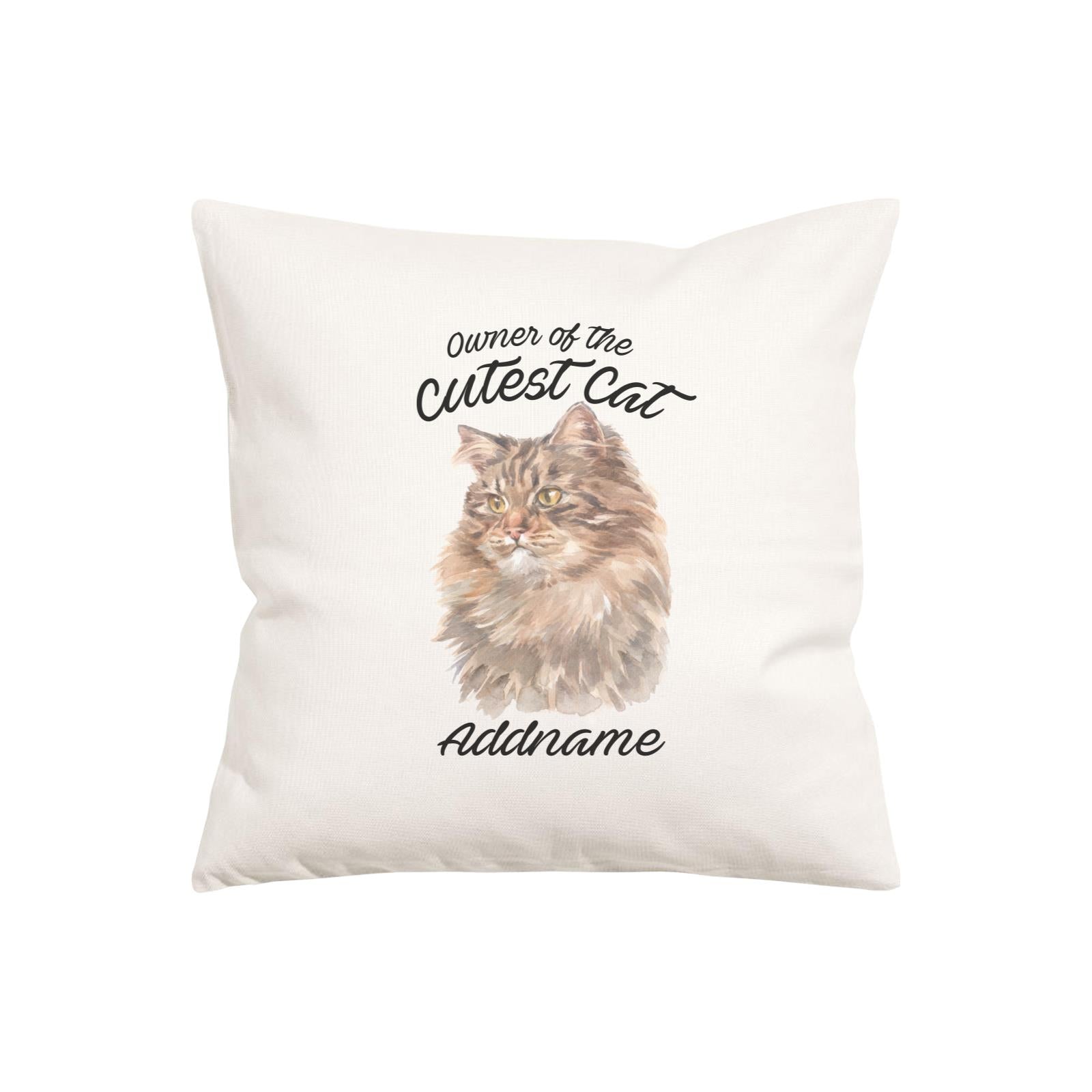 Watercolor Owner Of The Cutest Cat Siberian Cat Brown Addname Pillow Cushion