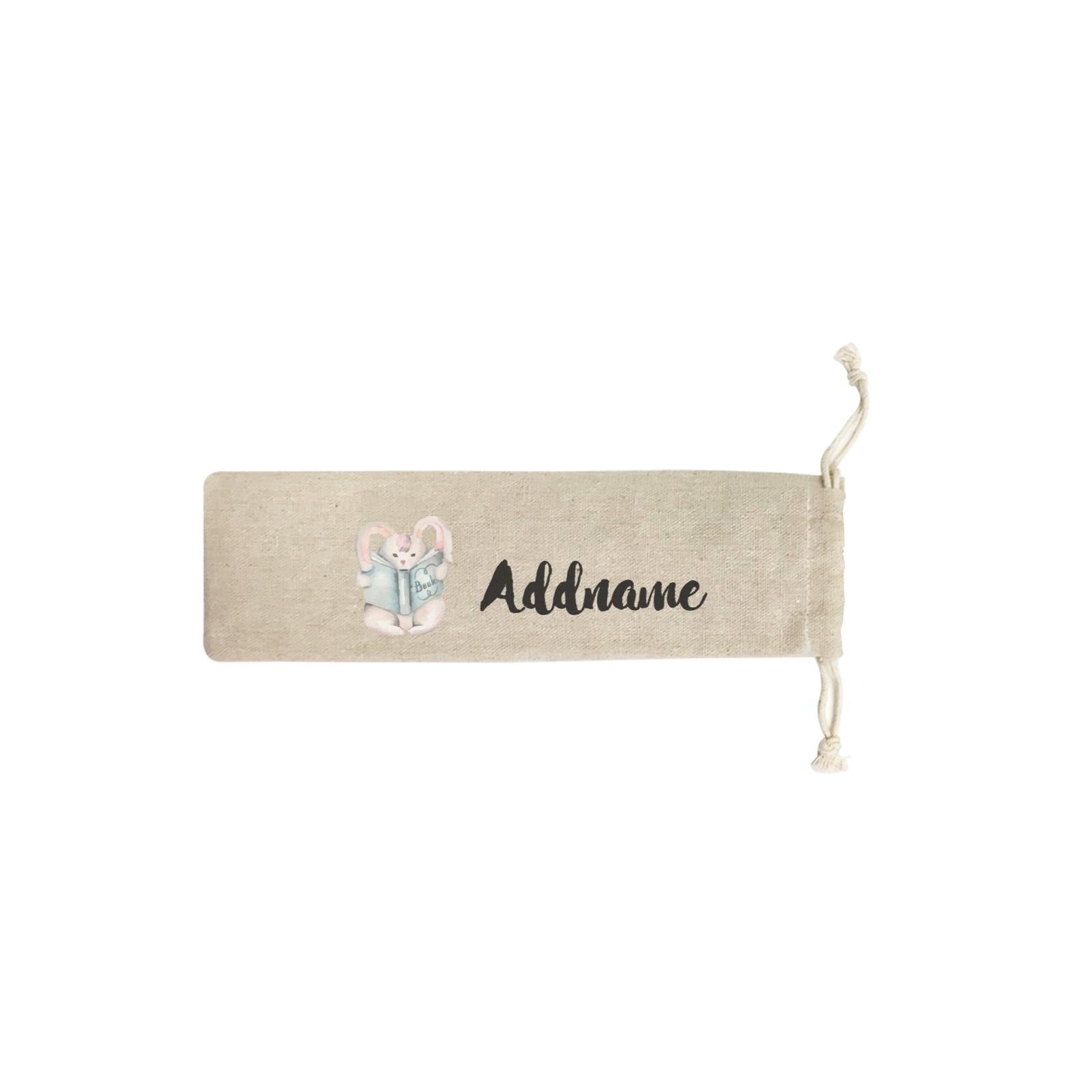 Watercolour Animal Sweet Rabbit Reading Book Addname SB Straw Pouch (No Straws included)