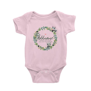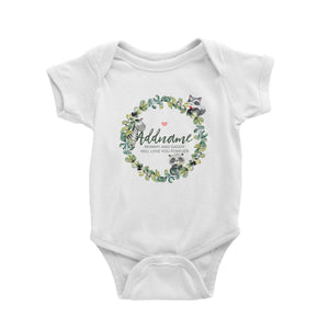 Watercolour Panda Zebra and Racoon Leaf Wreath Personalizable with Name and Text Baby Romper