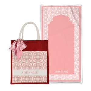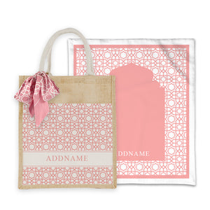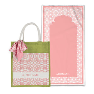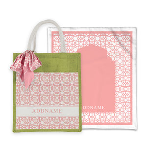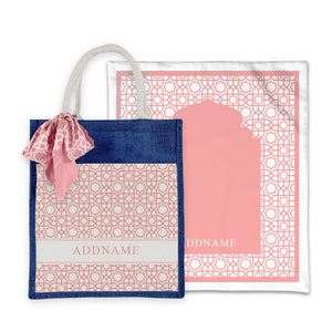 Annas Series - Pastel Peach Prayer Mat with Matching Colourful Jute Bag