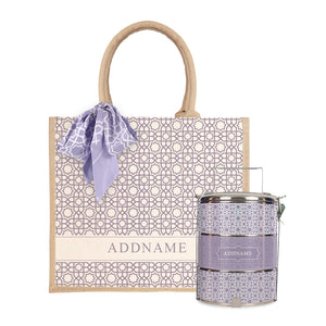 Annas Series -Purple Half Lining Jute Bag with Tiffin Carrier