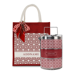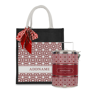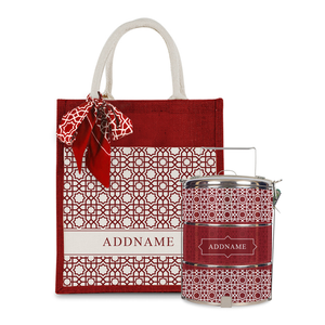 Annas Series - Rouge Colorful Jute Bag with Front Pocket with Tiffin Carrier Set