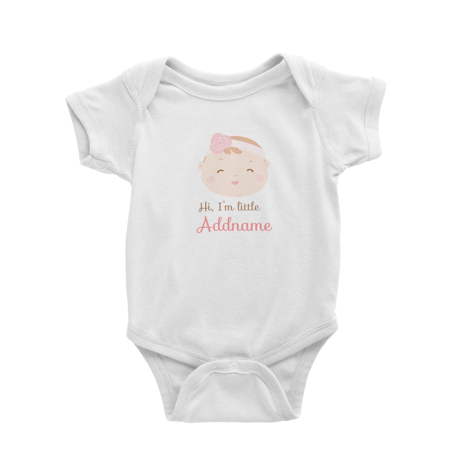 Cute Baby Girl with Flower Band Hi I Am Little Addname Baby Romper