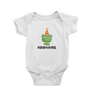 Birthday Frog Frog Wearing Party Hat Addname Baby Romper
