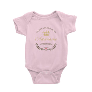 Daddy and Mommy's Prince with Crown Wreath Personalizable with Name Text and Date Baby Romper