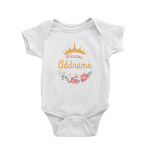 Princess Addname with Tiara and Flowers 2 Baby Romper