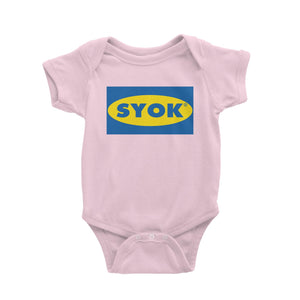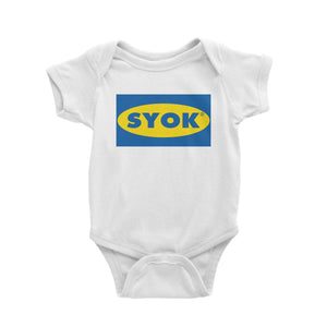 Slang Statement Syok Baby Romper is a great way of making a statement! Made with 100% cotton, High Quality and Comfortable to wear. Get them personalised, and in matching Family Outfits as well!
