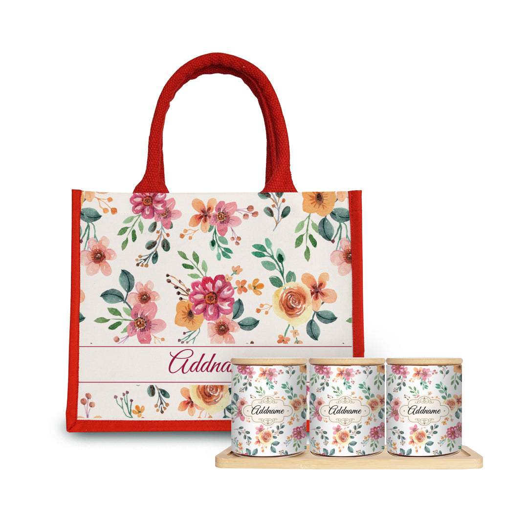 1x - Canisters with Tray (Size Guide : 8.5cm (Diameter) x 11.7cm (Height) ; 400ml Capacity)