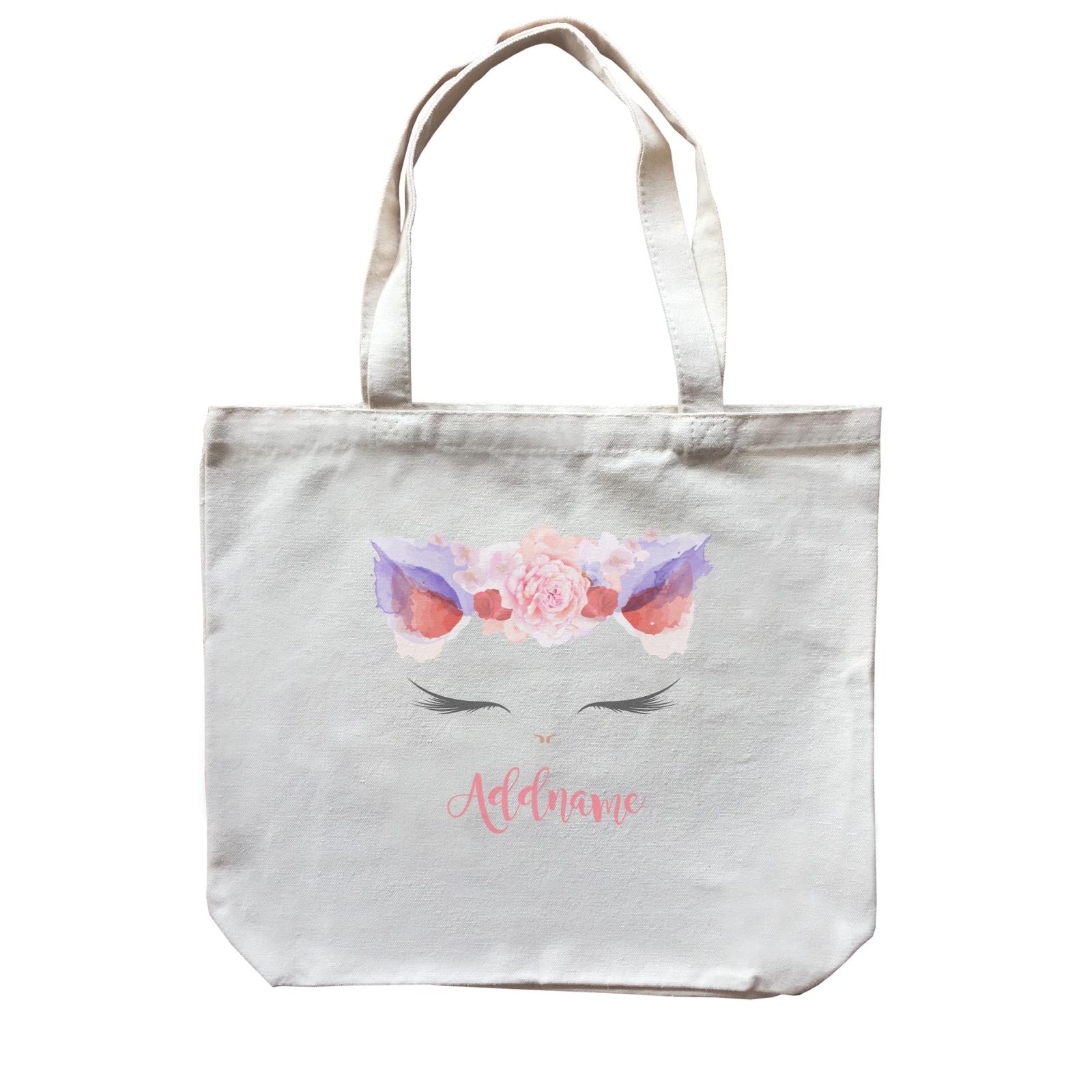 Pink and Red Roses Garland Cat Face Addname Canvas Bag