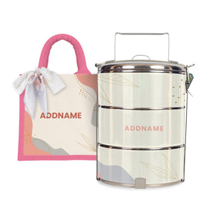 Takeaway in style with your own tiffin/mangkuk tingkat, personalised with your name/initial/brand.