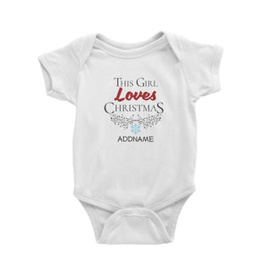 Xmas This Girl Loves Christmas Baby Romper is a great way of making a statement! Made with 100% cotton, High Quality and Comfortable to wear. Get them personalised, and in matching Family Outfits as well!