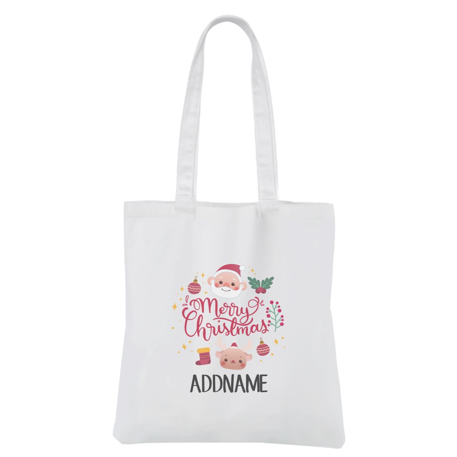 Christmas Cute Animal Series Merry Christmas White Canvas Bag