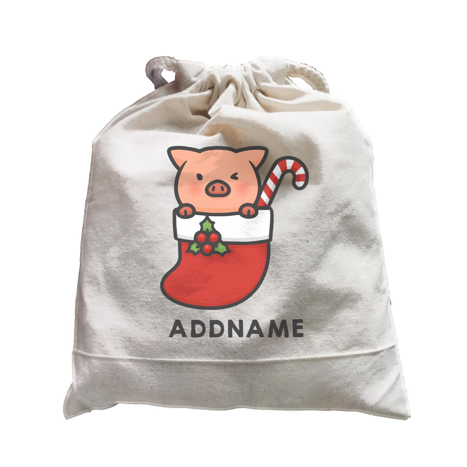 Xmas Cute Pig In Christmas Sock Addname Accessories Satchel