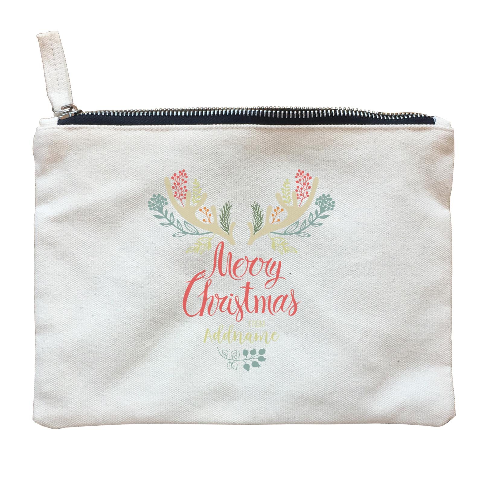 Christmas Reindeer Icon With Merry Christmas Addname Zipper Pouch