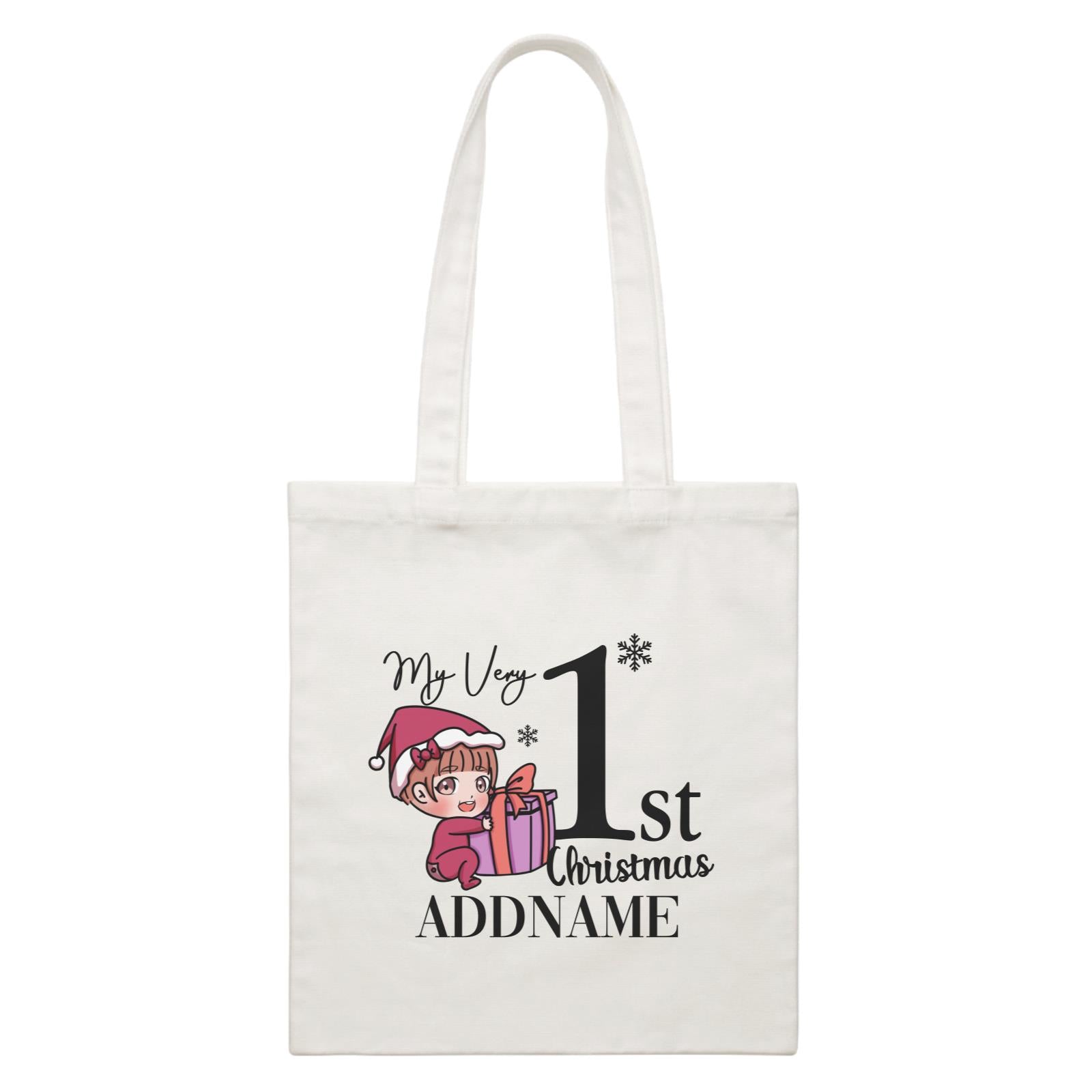 Xmas Christmas Chibi Family My Very 1st Christmas Baby Girl Holding Present White Canvas Bag