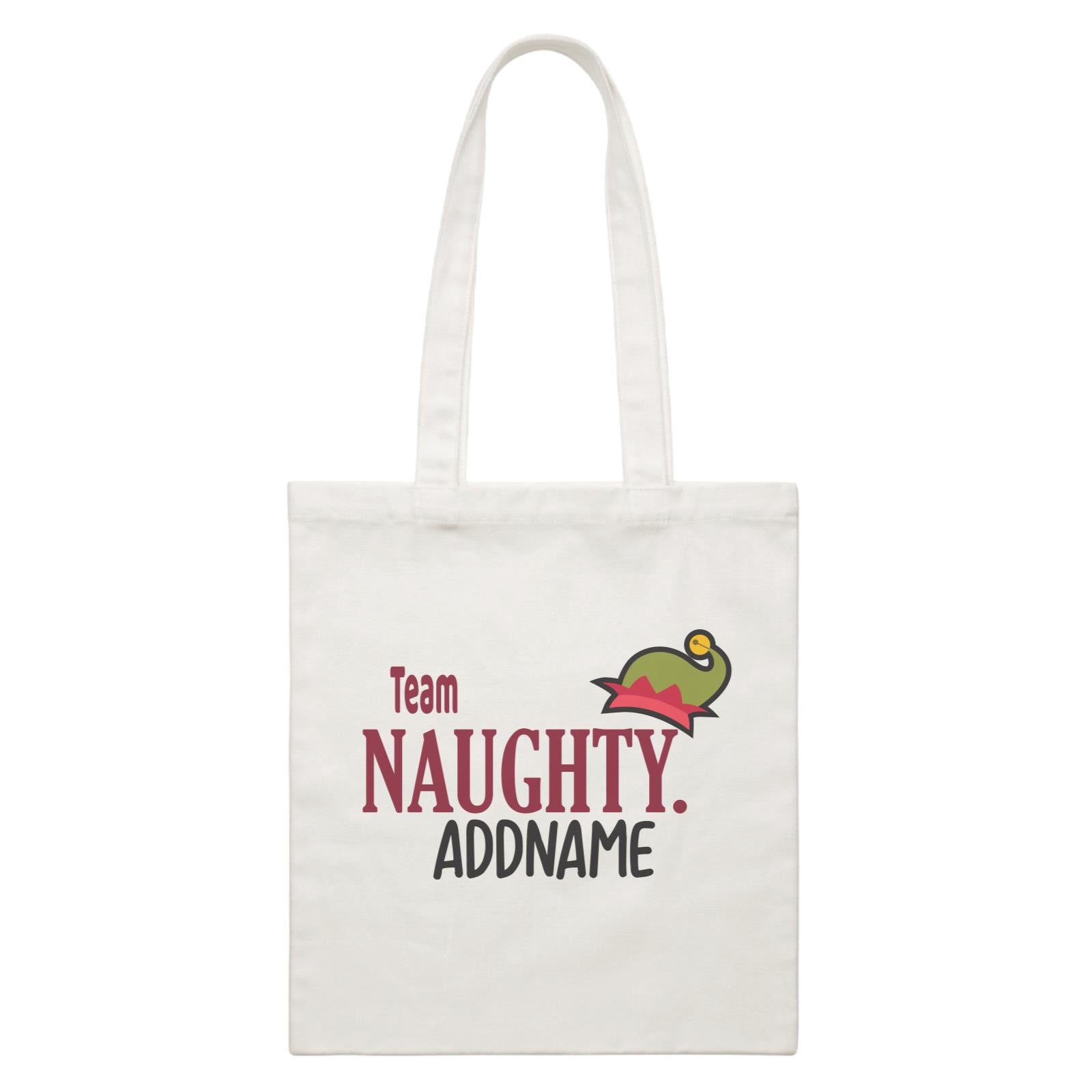 Xmas Team Naughty with Elf Hat Canvas Bag