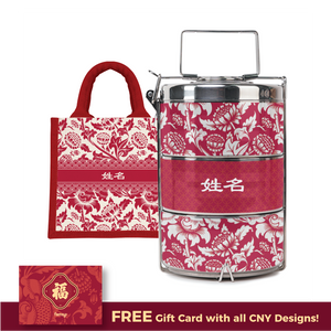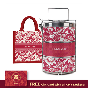 Takeaway in style with your own tiffin/mangkuk tingkat, personalised with your name/initial/brand.