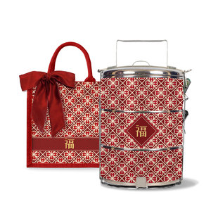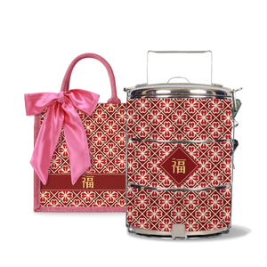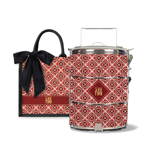 Lucky Jade (Red Design) - Lunch Tote Bag with Three-Tier Tiffin Carrier
