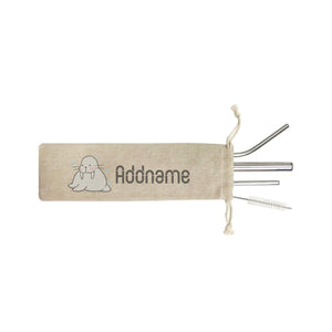 Cute Hand Drawn Style Walrus Addname ST SZP 4-In-1 Stainless Steel Straw Set in Satchel