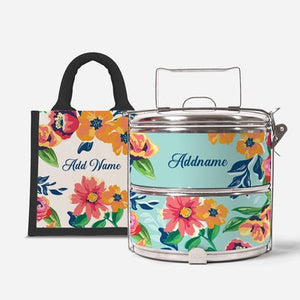 Deborah Series - Celeste - Lunch Tote Bag with Two-Tier Tiffin Carrier