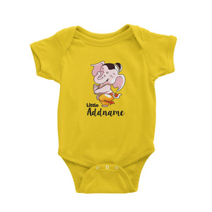 Cute Dancing Ganesha Little Addname Baby Romper is a great way of making a statement! Made with 100% cotton, High Quality and Comfortable to wear. Get them personalised, and in matching Family Outfits as well! Disclaimer : Please note that we DO NOT PRINT GOLD prints. Any colours in the mock ups that may have represented that is unintentional and will be printed in a yellow mustard colour.