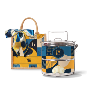 Lunar Blessing (Navy Design) - Lunch Tote Bag with Two-Tier Tiffin Carrier