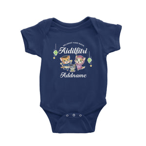 Raya Cute Animals Cat Family With Baby Boy Wishes Selamat Hari Raya Aidilfitri Baby Romper