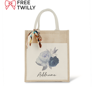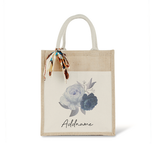 Blue Rose with Colourful Jute Bag with Front Pocket