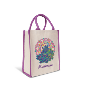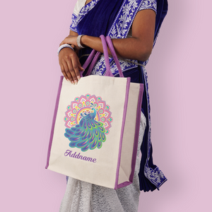 Deepavali Kolam Series Virtue Peacock with Purple Mandala Colour Lining Canvas Bag