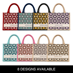 A beautiful full design printed on the perfect sized bag. Here’s your go-to everyday bag. It may be small, but it sure is mighty! Made from a canvas and jute material plus a  water-resistant lining on the inside, it makes it eco-friendly, durable and long lasting. Carry your essentials and run errands with ease as our Annas jute bag is perfect to hold everything for you. Personalise your name and be your own brand.
