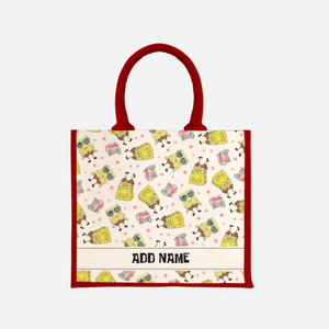 SpongeBob - Get Happy Pattern Personalized Half Lining Jute Bag
