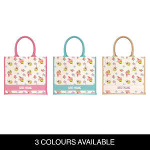 Our bags are made from a jute and canvas material that is both eco-friendly and is heat resistant. This tote bag is perfect for carrying around groceries, personal items, food and many more. Personalize it to your liking.