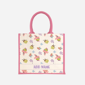 SpongeBob - Happy Walking Pattern Personalized Half Lining Jute Bag