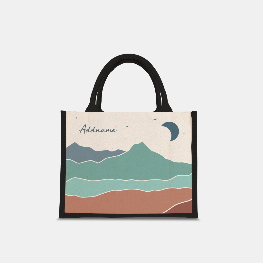 Kaira Series Half Lining Small Jute Bag - Azraq Black