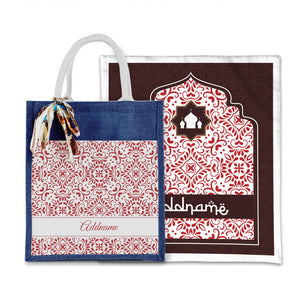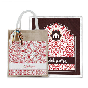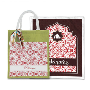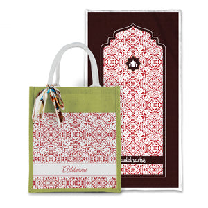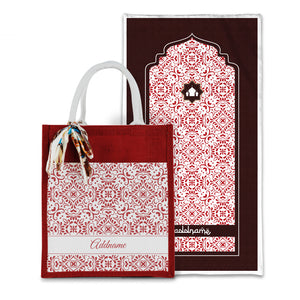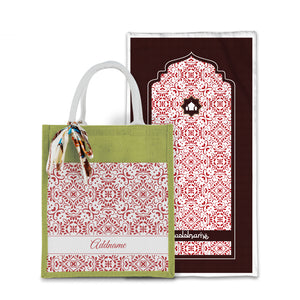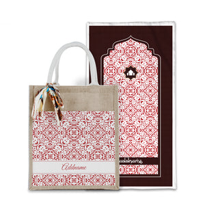 Arabesque Rosette Sejadah with Matching Colourful Jute Bag