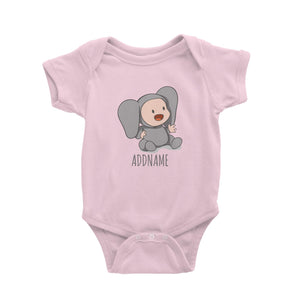Cute Baby in Grey Elephant Suit Addname Baby Romper