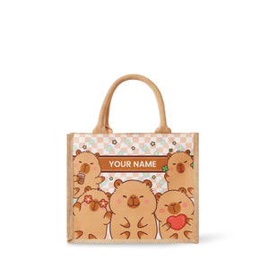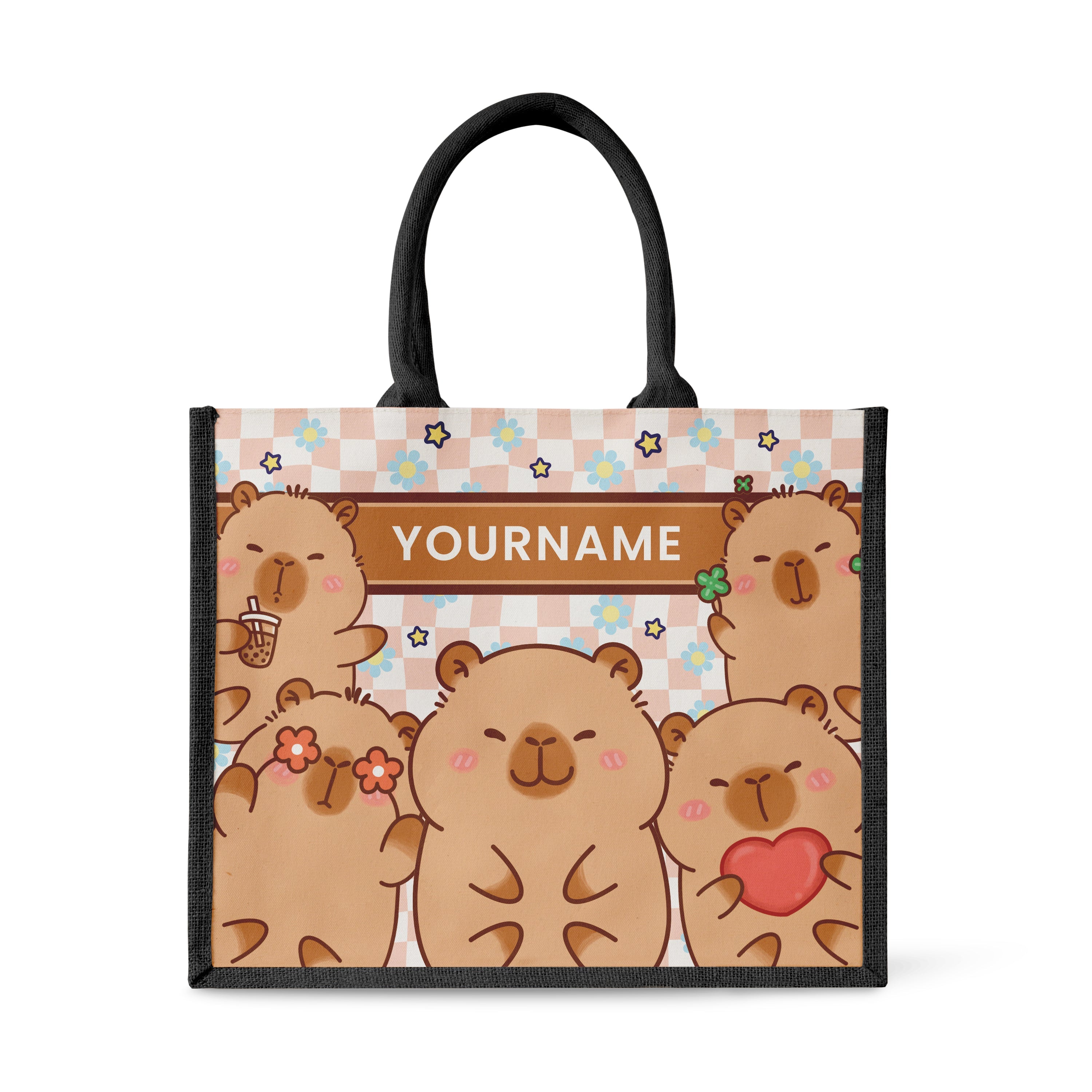 Meet your new favorite everyday accessory our Capybara Collection tote bags! Designed for capybara lovers and bag enthusiasts alike, these waterproof tote bags are perfect for adding a touch of whimsy to your day.