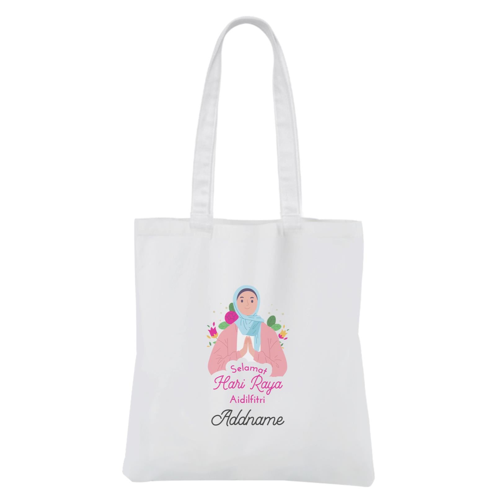 Selamat Hari Raya Aidilfitri Pink White Canvas Bag