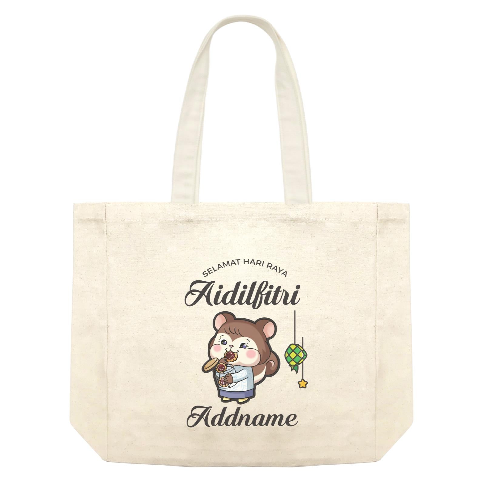 Raya Cute Animals Sister Squirrel Wishes Selamat Hari Raya Aidilfitri Shopping Bag is made with 100% canvas cotton, and can be personalised with a name. Each Shopping Bag measures 38cm x 47cm layflat, and can be expanded to store wider items. Super versatile for use all year round!