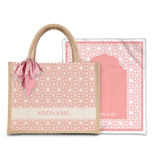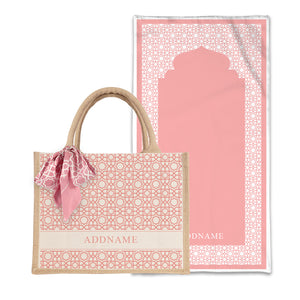 Annas Series - Pastel Peach Prayer Mat with Natural Half Lining Small Jute Bag