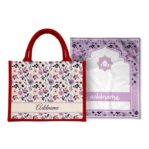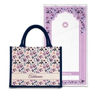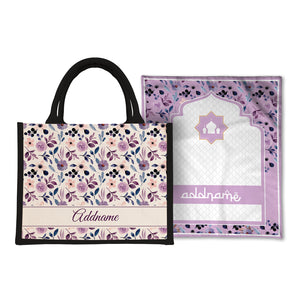 Violet Sejadah Prayer Mat with Half Lining Small Jute Bag Bundle